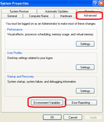 4- Add boost � lib_shared � directory to the Windows � PATH � (optional) Note : this step is optional and not required by default : if you don't want to work with boost serialization features, then you can go directly to next step. Go to � System properties � Windows screen, � Advanced � tab, then click on � Environment Variables � button :