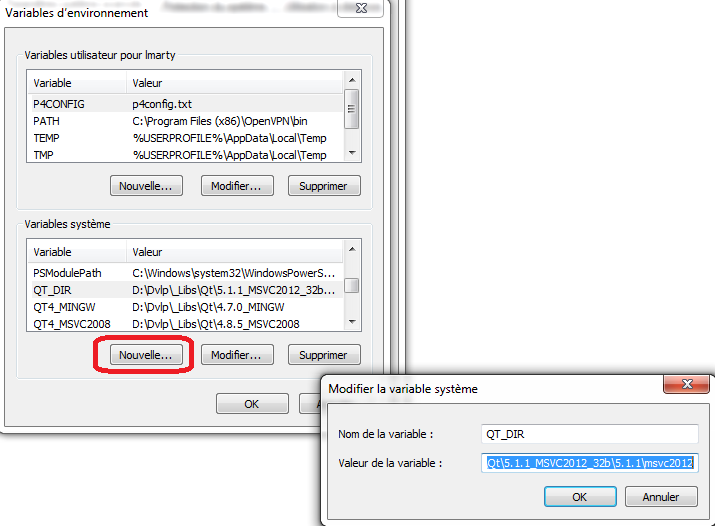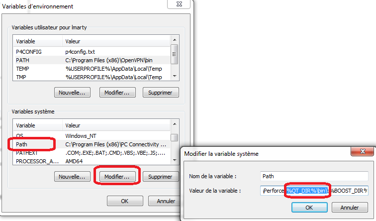 Modifier la variable syst�me � PATH � pour ajouter la valeur suivante : � ;%QT_DIR%\bin\; �