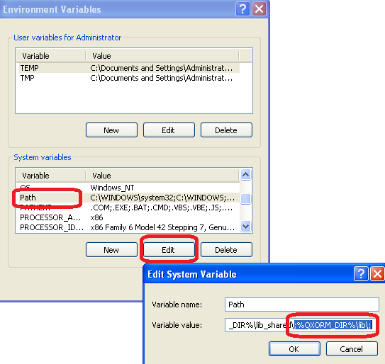 Modify the system variable � PATH � to add the following value : � ;%QXORM_DIR%\lib\; �