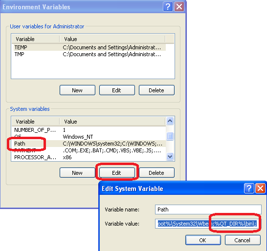 Modify the system variable � PATH � to add the following value : � ;%QT_DIR%\bin\; �