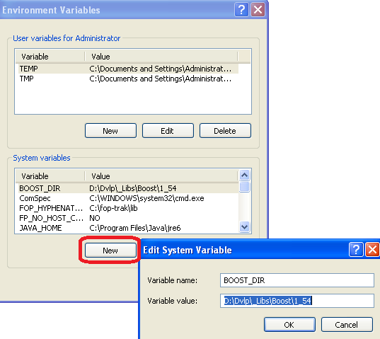 4- Add boost � lib_shared � directory to the Windows � PATH � (optional) Note : this step is optional and not required by default : if you don't want to work with boost serialization features, then you can go directly to next step. Go to � System properties � Windows screen, � Advanced � tab, then click on � Environment Variables � button :