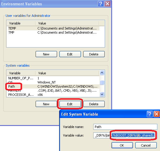 Modify the system variable � PATH � to add the following value : � ;%BOOST_DIR%\lib_shared\; �